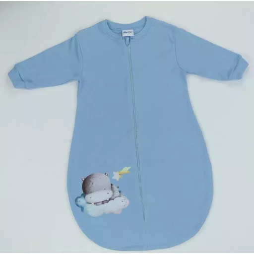 Baba hálózsák, melyben kisbabádnak édes álmai lesznek! Ez a hosszú ujjú, vékony pamut hálózsák, melyen a Viziló minta játssza a főszerepet, nem csak kényelmes, hanem igazán stílusos is. A világos kék színű hálózsákot Magyarországon készítették, így garantáltan minőségi anyagokból, odafigyeléssel és szeretettel készült, hogy a legjobbat nyújtsa a legkisebbeknek. Az elöl található cipzár könnyű használatot biztosít, így a pelenkázás is egyszerű lesz. A 100% pamut anyag pedig biztosítja, hogy baba bőre szabadon lélegezzen, míg ő mélyen alszik. A hálózsák 1 TOG értékkel rendelkezik, ami azt jelenti, hogy közepes hőmérsékleten az egyik legjobb választás. Segítünk a választásban: a mellékelt táblázatban megtalálod a hálózsák összes tulajdonságát, és hogy melyik időjárási viszonyokhoz és hőmérsékleti tartományhoz ajánlott.