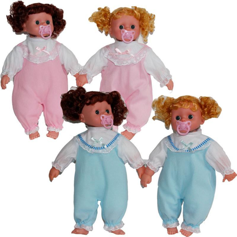 Baba alvós , elemes. szõke és barna hajas , IC hanggal és cumival , 2 színben , 48x24 cm zacskóban.