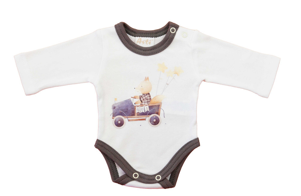 Kisbabák ruhatárának praktikus alapdarabja a body. Ez a cuki mintával nyomott baba body minőségi, bababarát 100% pamut anyagból készült, szín- és formatartó anyagból, ami jól bírja a gyakori mosást is. Vállán patentos, így megkönnyíti a baba öltöztetését. A lába közötti patentos megoldás, pedig a gyors peluscserét teszi lehetővé.