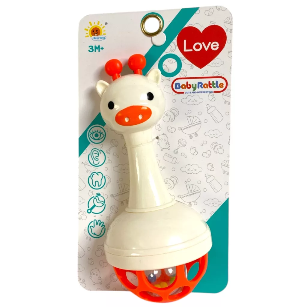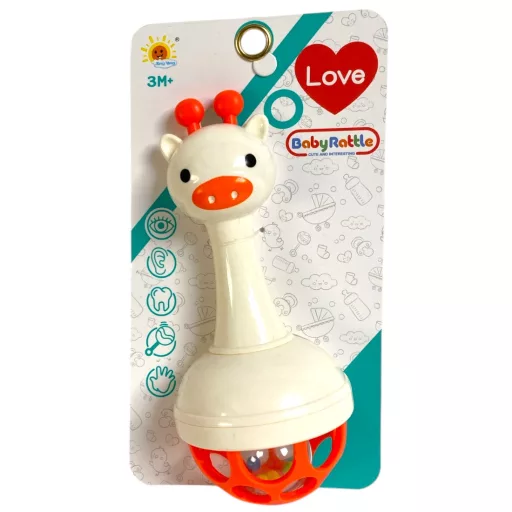 Bébi csörgõ, lyukacsos, labdával, 2 szín, 11x20 cm lapon