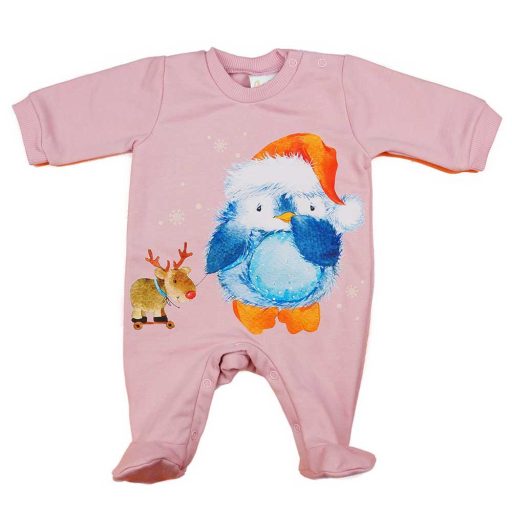 Öltöztesse be kisbabáját ebben a bolyhos, hosszú ujjú rugdalózóban, melynek cuki pingvin mintája azonnal mosolyt csal az arcára. A púderszínű rugdalózó a legjobb minőségű, Magyarországon készült termék, mely 65% pamut és 35% poliészter anyagból készült. Az I. osztályú minőség garantálja, hogy a rugdalózó hosszú ideig ellenáll a gyakori mosásnak és használatnak. A nikkelmentes patentokkal készült rugdalózó nem vált ki allergiás reakciót az erre érzékeny babáknál, így nyugodt szívvel adhatja rá a legkisebbekre is. A rugdalózó tökéletes választás lehet karácsonyi ajándéknak is!