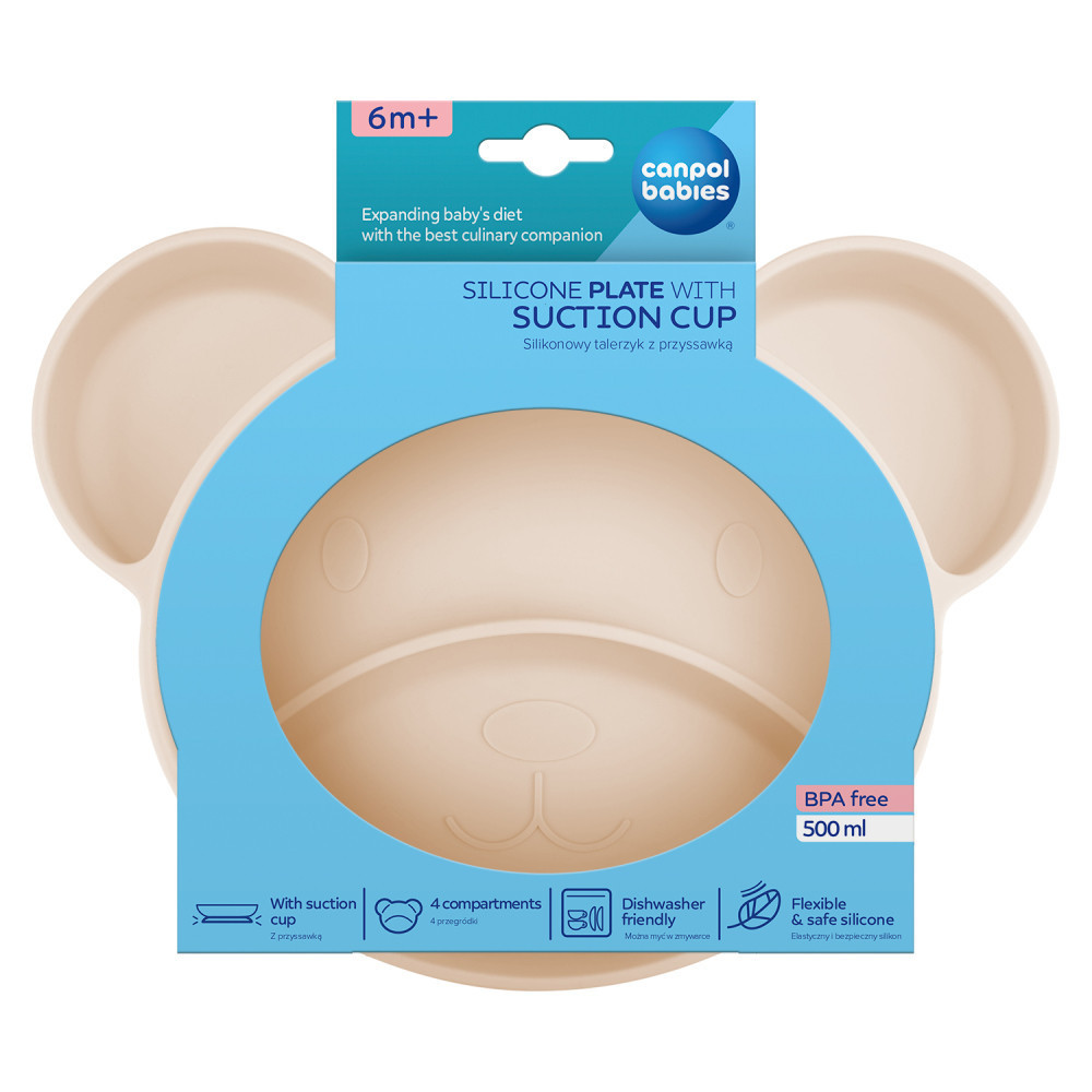 Canpol babies Szilikon osztott tányér, tapadókoronggal, Mackó - krémszín