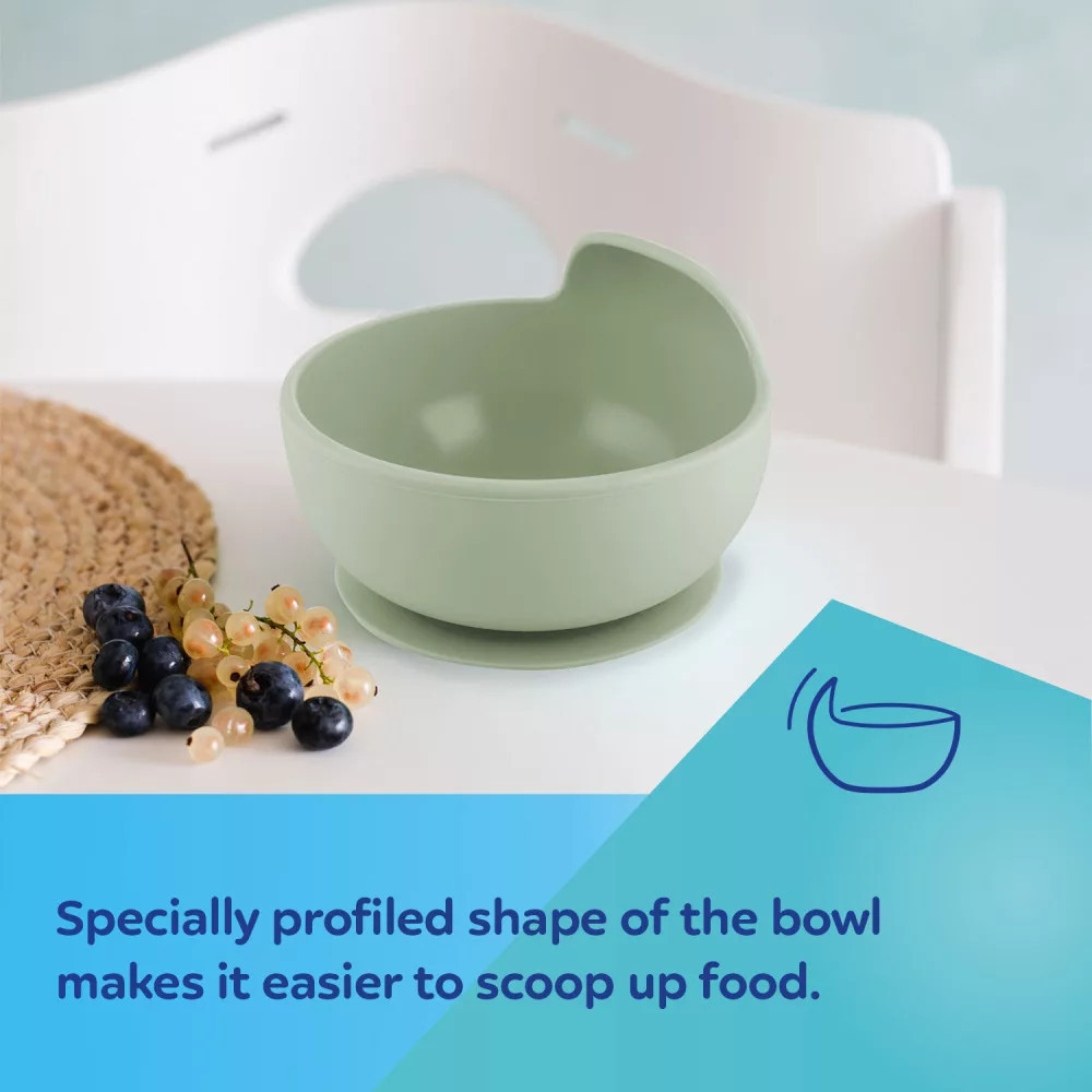 • A tapadókoronggal ellátott szilikon tál tökéletes a baba első étkezéseihez az étrend bővítésével kapcsolatos kaland kezdetén, és akár a BLW módszerhez is használható