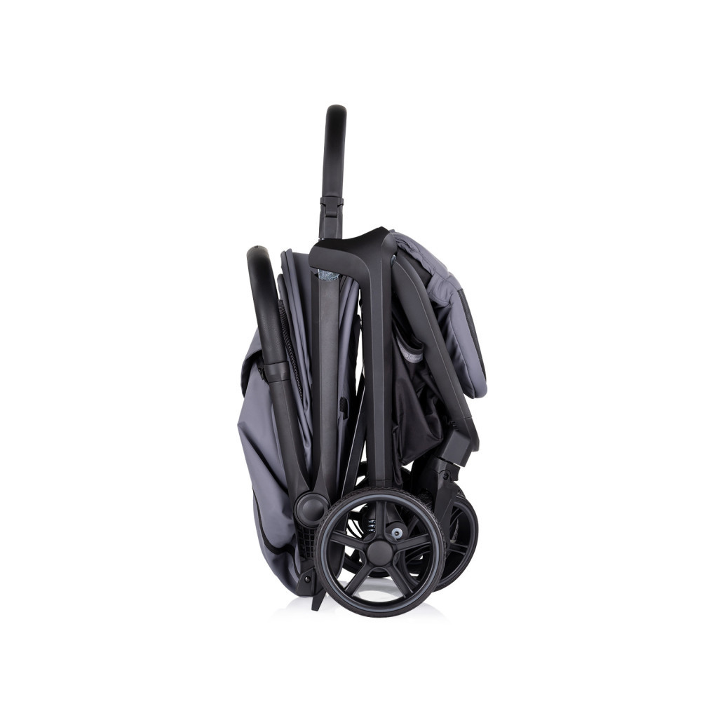 Könnyű sport babakocsi, melyet egyszerűen egy kézzel össze lehet csukni lap alakúra. Összecsukva kis helyen is elfér, így tökéletes utazáshoz, mert kis helyet foglal el a csomagtartóba.