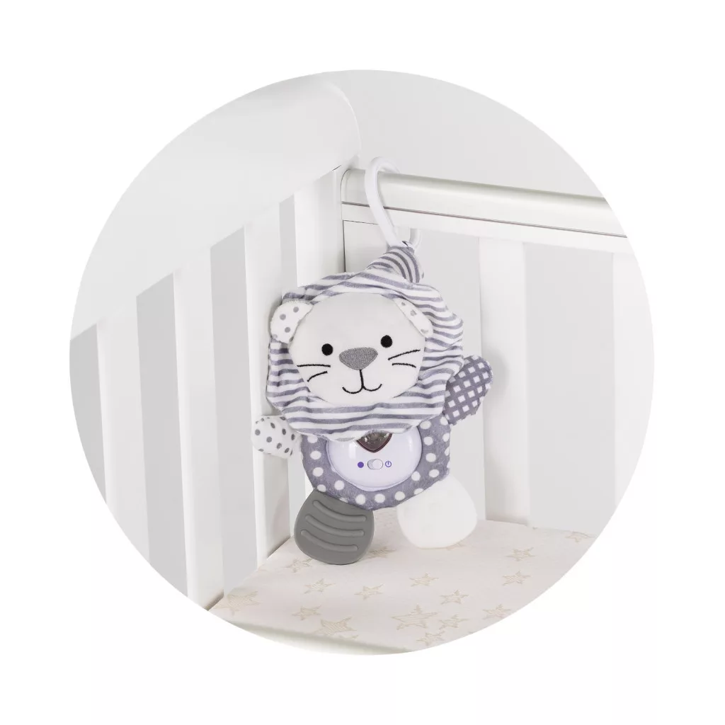 Kompakt kialakításának köszönhetően a babakocsira vagy kiságyra egyszerűen rögzíthető. Ezek az ölelnivaló barátok tökéletes társak a kicsik számára.