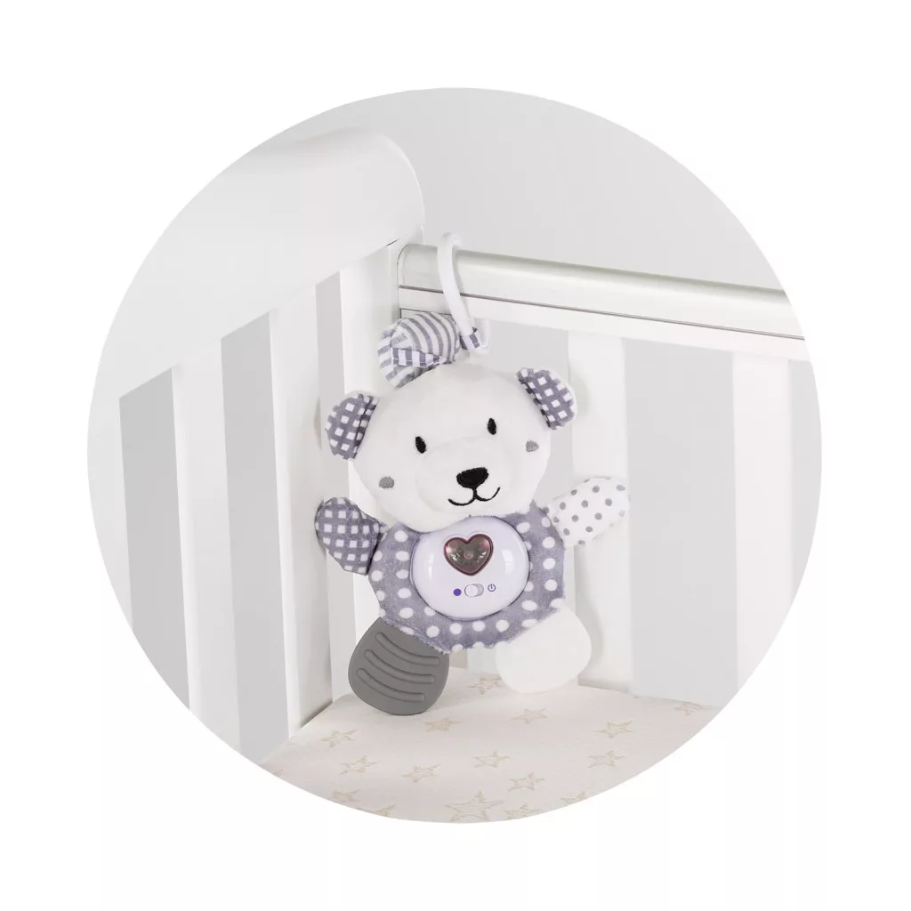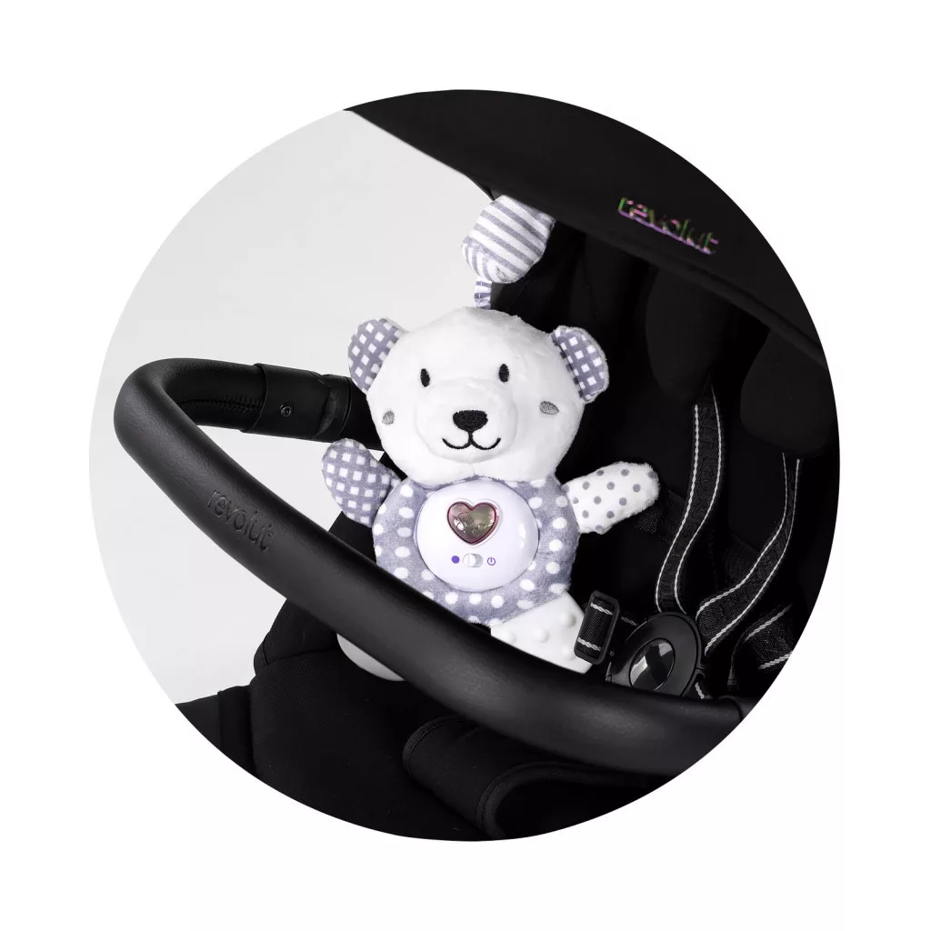 Kompakt kialakításának köszönhetően a babakocsira vagy kiságyra egyszerűen rögzíthető. Ezek az ölelnivaló barátok tökéletes társak a kicsik számára.
