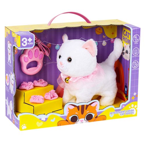 Cica plüss klt., el., interaktív, pórázzal, vez., jön-megy, USB csatl., 32x26 cm dob.