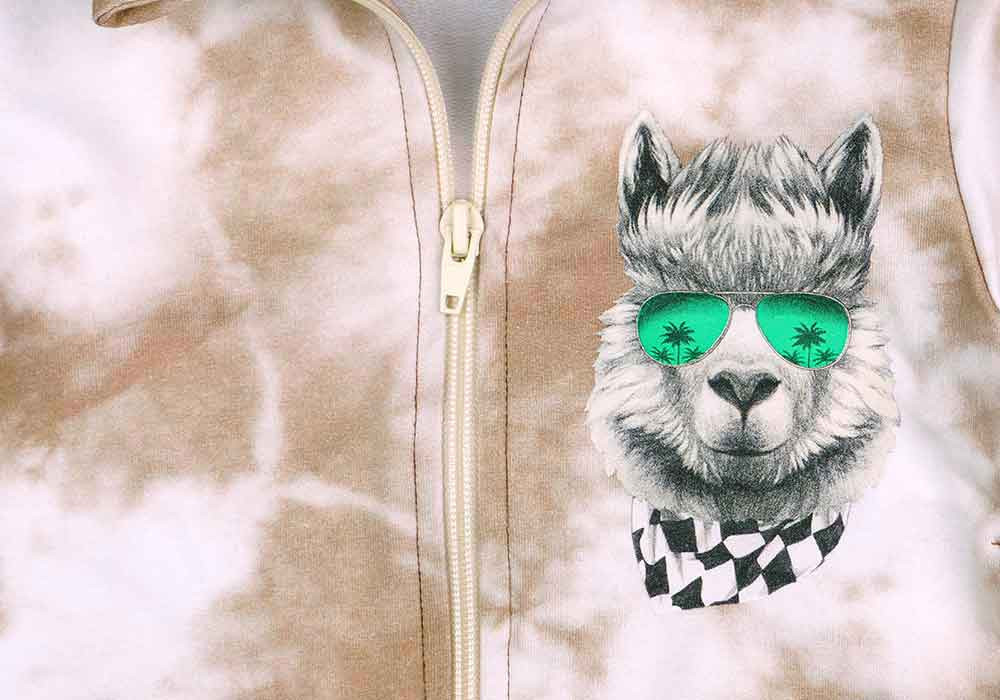 A fiúk imádni fogják ezt a vagány, batikolt kisfiú kardigánt, amelyet a legmenőbb láma fej díszít! A kardigán barna színű, és Magyarországon készült, ami garancia a minőségre. Az elöl cipzáras kivitel nagyon praktikus, így a gyerekek könnyedén fel tudják venni és levenni magukról. A vékony, de meleg, 100% pamut anyag kiválóan alkalmas tavaszi, őszi és hűvösebb nyári estékre is. A kardigán elasztikus anyagának köszönhetően kényelmes viselet egész napra, legyen szó óvodáról, iskoláról vagy játszótéri kalandokról. Kombinálható farmerrel vagy szabadidő nadrággal is. Ez az első osztályú minőségű, láma mintás kardigán biztosan kedvence lesz kisfiadnak!