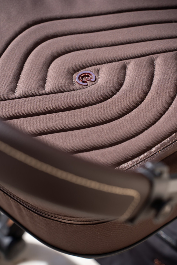 A babakocsi egyedi, klasszikus avangárd dizájnt kapott exkluzív anyagokkal kiegészítve.