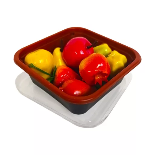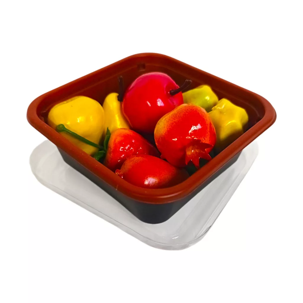 Étel klt., gyümölcs, zöldség, 10 db, 3 féle, tárolóban,11x11 cm pvc dob.