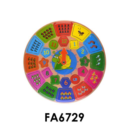 Fából készült óra játékosan tanítja meg a hagyományos óra használatát, a számjegyeket, a puzzle kirakó segítségével.