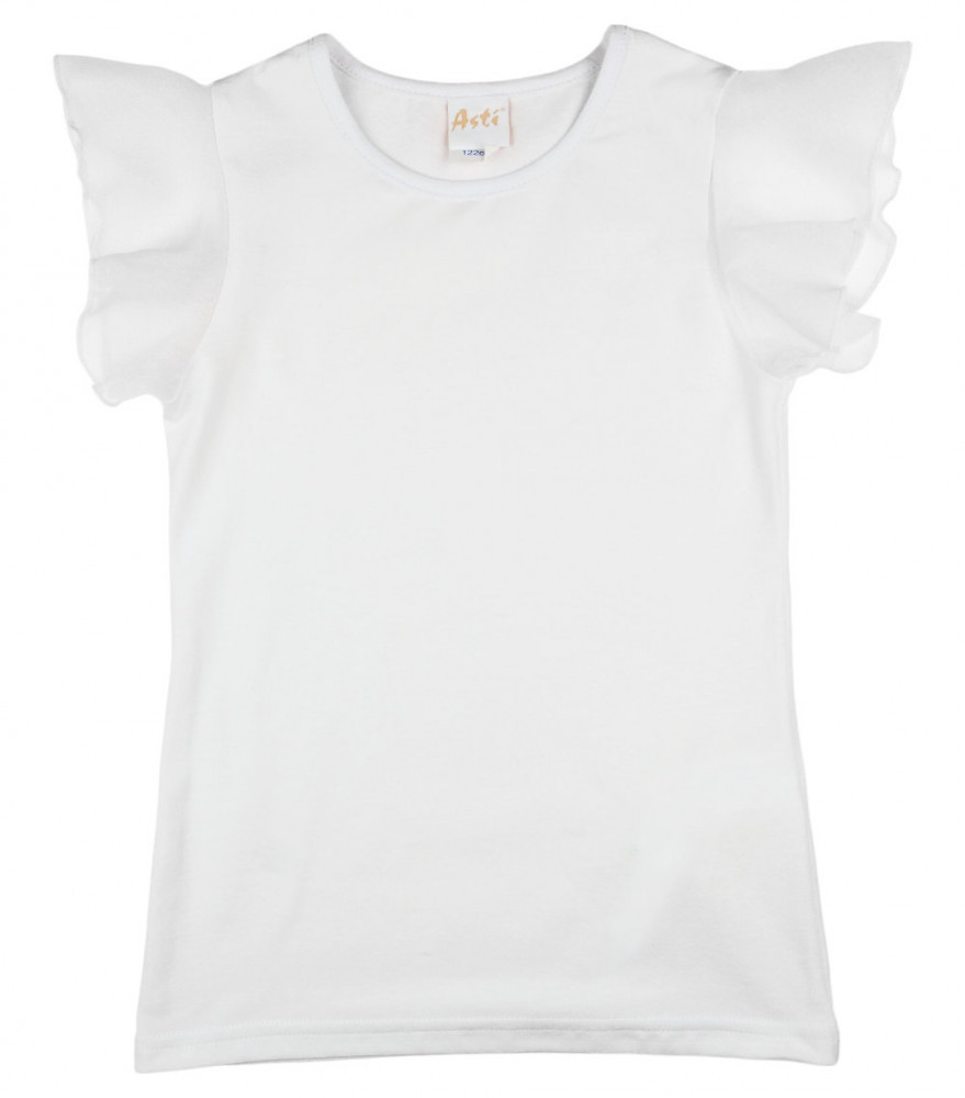 Elasztikus fehér pamut anyagból, rövid muszlin fodros ujjal.