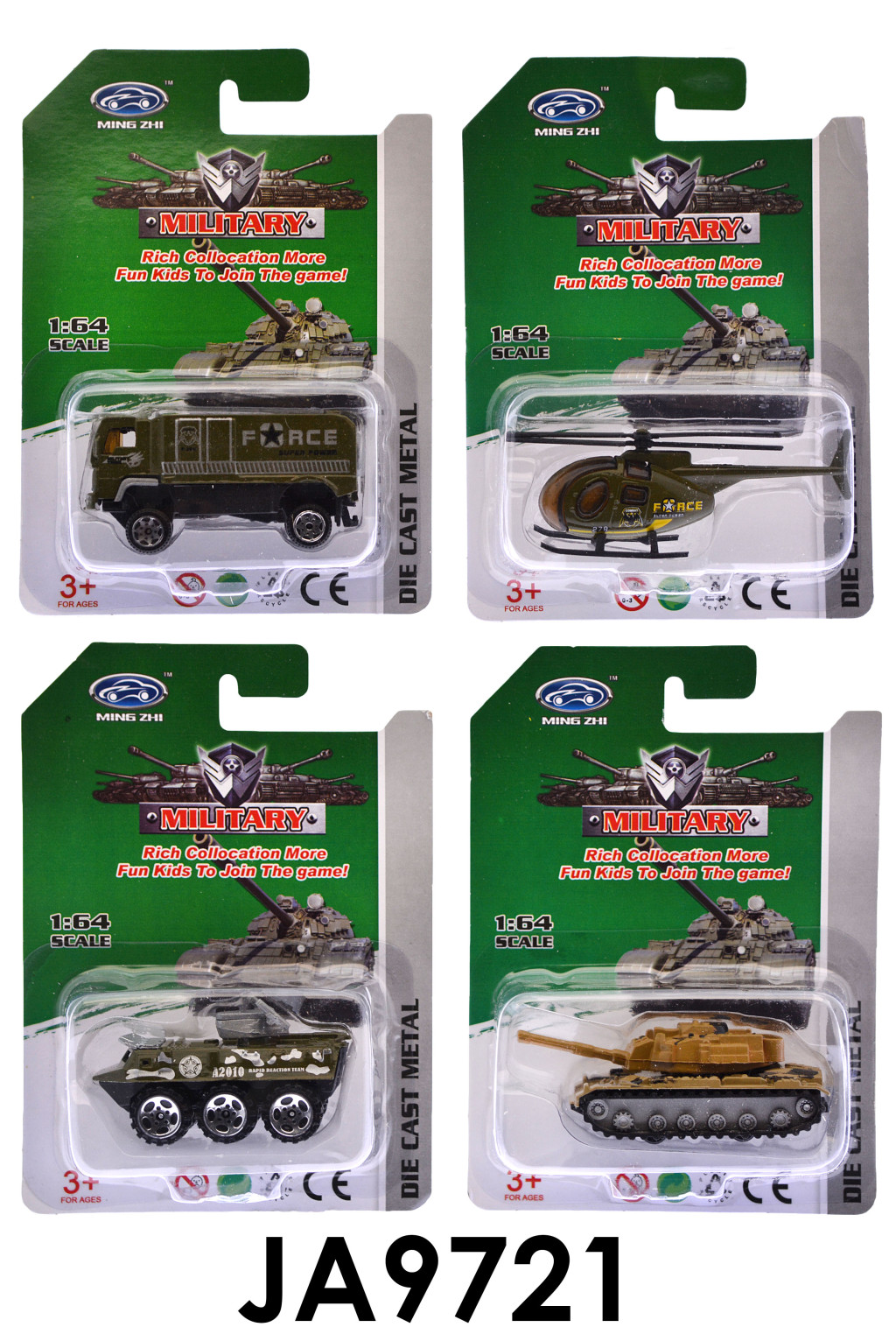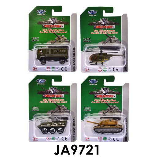 Fém katonai autó,- helikopter,- tank, szabadonfutó, 12 féle, 11x16 cm lapon