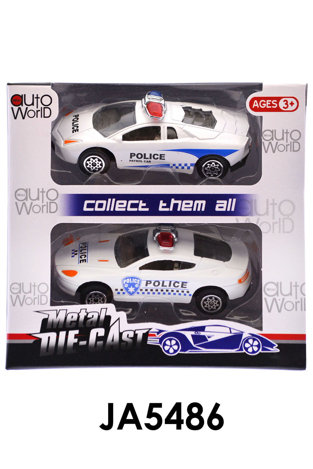 Fém rendõrautó, 2 db, 2 féle, 13x12 cm dob.