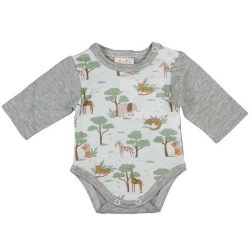 Különleges ajándék lehet az újszülötteknek ez a varázslatosan aranyos, állatos mintával ellátott hosszú ujjú baba body. A szürke színű, vállon patentos dizájn nem csak praktikus, de rendkívül divatos is. Az unisex stílus lehetővé teszi, hogy a kisfiúk és kislányok egyaránt hordhassák. Minőségi magyar termék, amelyet 100% pamutból készítettek, így garantáltan kényelmes viselet lesz a babának. A body első osztályú minőségének köszönhetően tartós és strapabíró, a nikkelmentes patent pedig megóvja a babát az allergiás reakcióktól. A vidám állatminták pedig garantáltan mosolyt csalnak mindenki arcára!