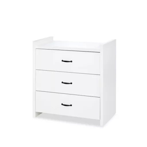 A komód 3 fiókkal lett kialakítva, amelybe kényelmesen belepakolhatunk. A fiókok golyós csapágyakkal működtethetők a könnyebb és praktikusabb használatért. Merev pelenkázó lappal pelenkázó komódként is használható.