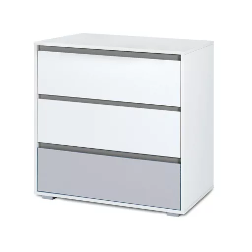 A Klups Dalia Grey komód egy klasszikus, a három fiók és a pelenkázólap felszerelésének köszönhetően kiválóan illik egy babaszobába és a későbbi időkre is megfelelő választás.