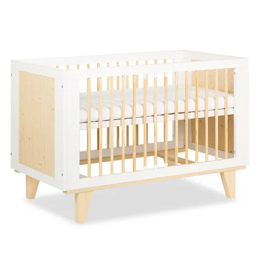 Oldalt rácsos kiságy fehér és fenyő színben, 3 fokozatban állítható magasságú, kényelmes fekvő felülettel, melyet mindig a gyermek korának megfelelően lehet beállítani. Ez a szülőknek is rendkívül praktikus, mert nem szükséges nagyot hajolni a gyermek kivételekor. Legalacsonyabb fekvő pozíció esetén 3 kivehető rács oszlopának köszönhetően gyermeke önállóan elhagyhatja kiságyát. Újszülött kortól ajánljuk.