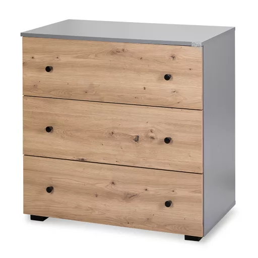 A Little Sky Pauline komód tökéletes kiegészítője a Pauline babaszobabútor családnak, amely stílusosan harmonizál a hozzá tartozó kisággyal. Modern grafit színe és natúr fa fogantyúi elegáns, letisztult megjelenést kölcsönöznek a babaszobának, miközben praktikus tárolási lehetőséget biztosít a mindennapokhoz.