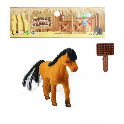 Ló, flokkolt, + fésû, 8x10 cm, zacsk.