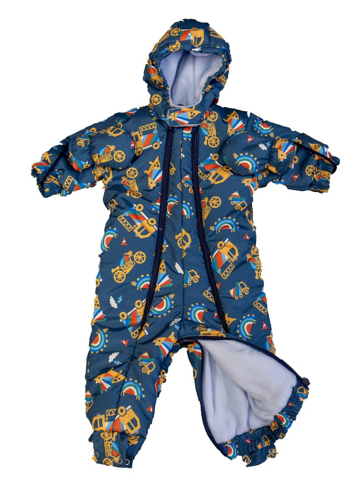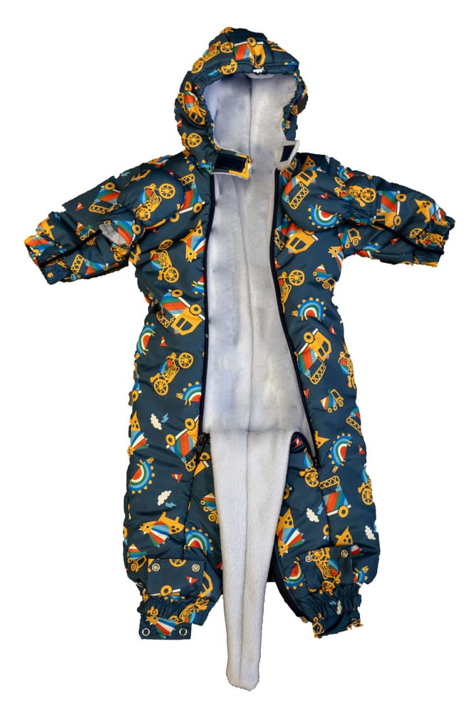 Egy igazán stílusos és praktikus választás a hideg hónapokra, ez cuki Jármű mintás kapucnis overál. Az overál különlegessége, hogy bundazsákká alakítható, így a hideg téli napokon is tökéletesen megóvja a kicsiket a fagyos időtől. A vízlepergetős anyaga pedig biztosítja, hogy a hó és az eső sem árthat a kis játszadozóknak. A bélése a kényelmet és a meleget biztosítja. Az elöl található cipzár segítségével könnyedén bele tudja helyezni a babát, valamint a lábrész szétnyitható kialakítása révén a baba mozgását sem gátolja. Mindezek mellett cuki mintája teszi igazán divatossá és aranyossá ezt az overált. Tökéletes választás azok számára, akik nem akarnak kompromisszumot kötni a stílus és a kényelem között.