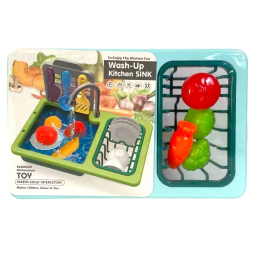Mosogató klt., edények, kieg., 19x12 cm., papírpánt +PVC