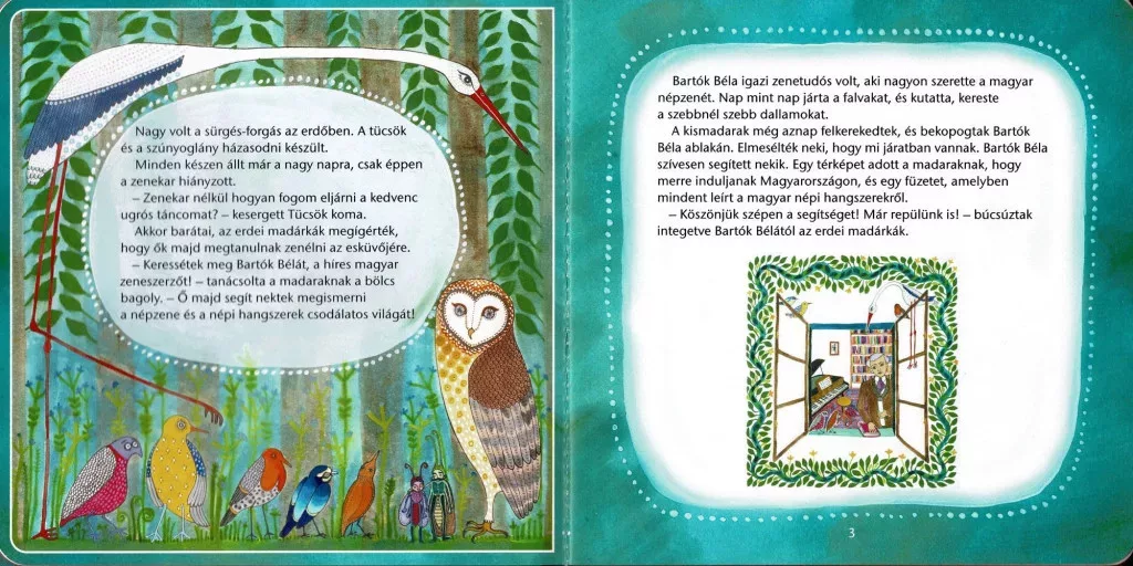 A madarak útja Bartók Béla házához vezet, aki készséggel segít nekik. Bartók nemcsak a magyar népdalok ismerője, hanem azok lelkes gyűjtője is, ezért a madaraknak egy térképet és egy kis füzetet ad, amelyben minden fontos népi hangszer leírását megtalálják. Innentől kezdve a madarak izgalmas utazásba kezdenek Magyarország különböző tájegységein keresztül. Megismerkednek a cimbalommal, a bőrdudával, a citerával, a furulyával és még sok más hangszerrel, mindegyik tájegység egyedi dallamait megszólaltatva.