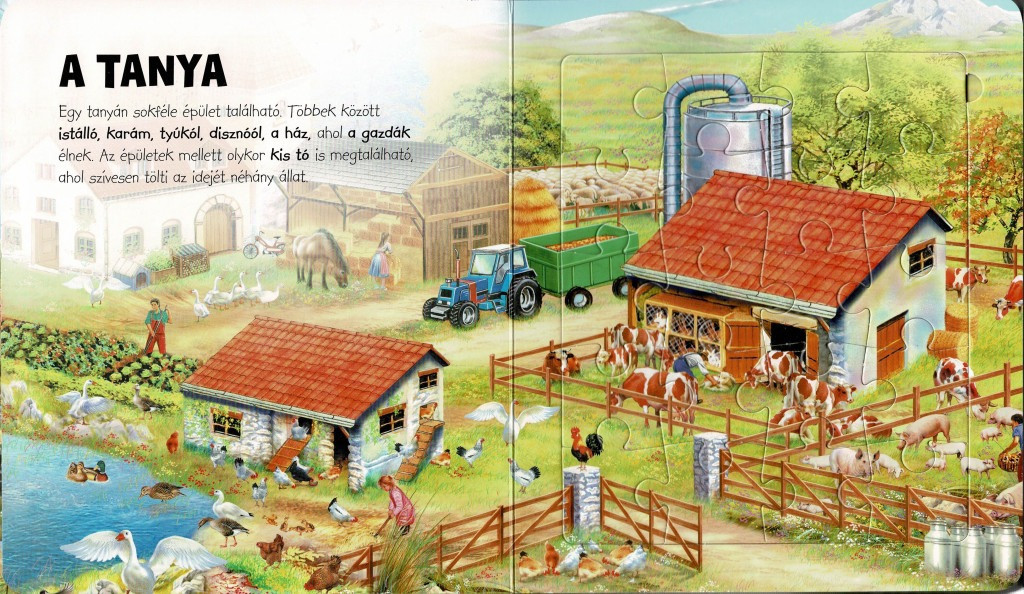A Szuper puzzle – A tanya állatai a nyugodt, kézzelfogható felfedezés élményét hozza el: a gyerekek látványos, részletgazdag képeket állítanak össze, miközben közelebb kerülnek a tanya világához. A kötet a kirakózás örömére épít, nem a versenyre: a jelenetek fokozatosan vonják be a figyelmet, egyre több apró részletet kínálva, hogy a gyerekek újra és újra visszatérjenek hozzájuk. A 6 db, egyenként 20 darabos puzzle ideális egyensúlyt teremt a sikerélmény és a kihívás között: elég könnyű ahhoz, hogy önállóan is megközelíthető legyen, és elég tartalmas ahhoz, hogy ne váljon rutinná.