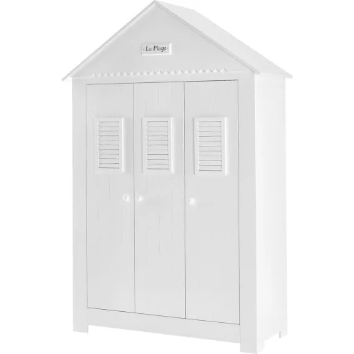 A Marsylia MDF kollekció nagyon tágas három ajtós szekrényét a Marsylia kollekcióra jellemző La Plage dekorációval (francia strand) látják el. Belül három polc és akasztóruda (két ajtó szélességén keresztül) és négy polc (egy ajtó szélességén keresztül). A szekrény egy francia tengerparti házhoz hasonlít, és jellegzetes felső koszorúja lejtős tető alakú. Az ajtó kiváló minőségű csendes zárórendszerrel rendelkezik.