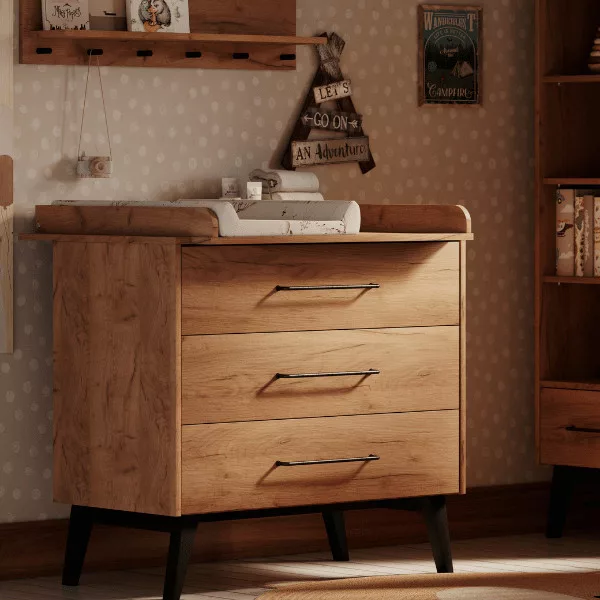 A Retro egyedülálló gyermekbútor-gyűjtemény egyesíti a tetőtér és a skandináv stílus elemeit. Univerzális kialakításának köszönhetően kiválóan alkalmas mind a fiú, mind a lány szobájára, időtlen esztétikát és funkcionalitást kínálva. Végezzen a tölgyfa természetes színével melegséget és barátságosságot mutat be a belső terekben, hangsúlyozva ugyanakkor a forma eleganciáját és egyszerűségét.
