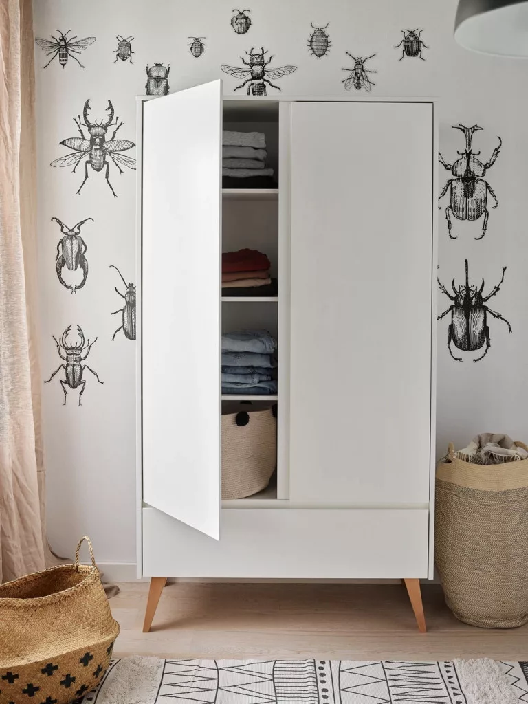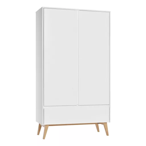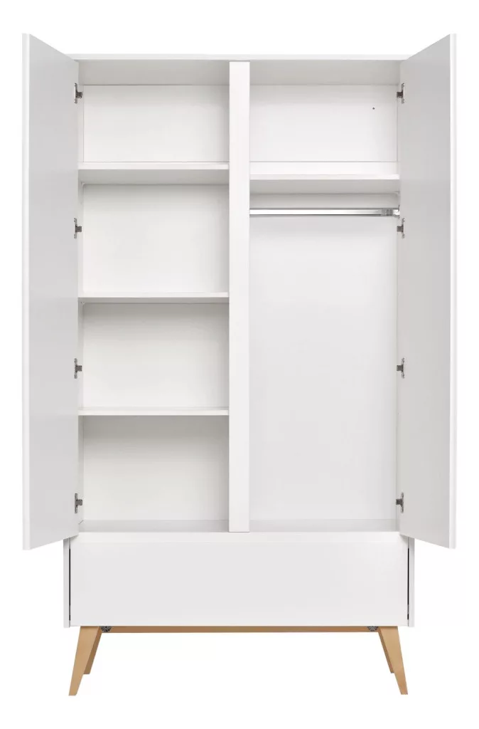 Jelenleg 2 ajtós szekrény a modern Swing kollekcióból. Ez egy egyedülálló kézműves munka, amely a legmagasabb minőségű csendes zárórendszerrel van felszerelve. Belül praktikus függőleges válaszfal és különféle belsőépítészeti lehetőségek találhatók 2 ajtós szekrény. Konfigurálhatja például az egyik oldalon 4 polc, a másik oldalon 2 polc és a másik oldalon egy ruhadarab. Mint szabvány 2 ajtós szekrény 6 polcot és 1 ruházati bárot kínál, további polcok (legfeljebb 2 darab) megvásárlásának lehetőségével.