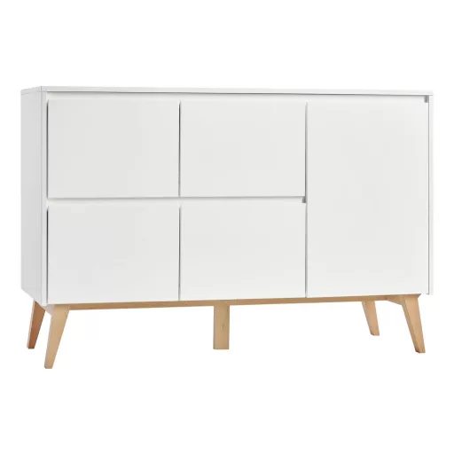 Itt bemutatjuk Pinio Swing 4 fiókos szekrény ajtóval ötvözi az eleganciát és a funkcionalitást. Négy praktikus fiókkal és egy ajtóval van felszerelve, amelyek kiváló minőségű fék- és önzáró vezetőkön mozognak. Ez tökéletes megoldás azok számára, akik értékelik az átgondolt megoldásokat és az esztétikai kialakítást. További előnye az, hogy megvásárolható cserélhető padot vásárolunk, ami minden bizonnyal hasznos lesz a kisgyermekek szülei számára.