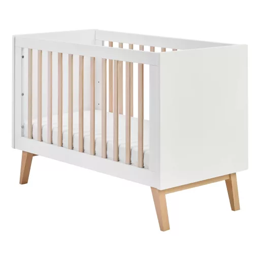 Pinio Swing kiságy 120×60 120 x 60 cm-es matraccal. 3 matrac magassági szinttel és két levehető létrafokkal felszerelt. További előny az egyik oldal szétszedhetősége, amivel a 120×60-as ágyat a növekvő gyermekhez igazíthatja. A felszerelt korlát biztosítja a biztonságot, miközben lehetővé teszi az ágyhoz való könnyű hozzáférést.