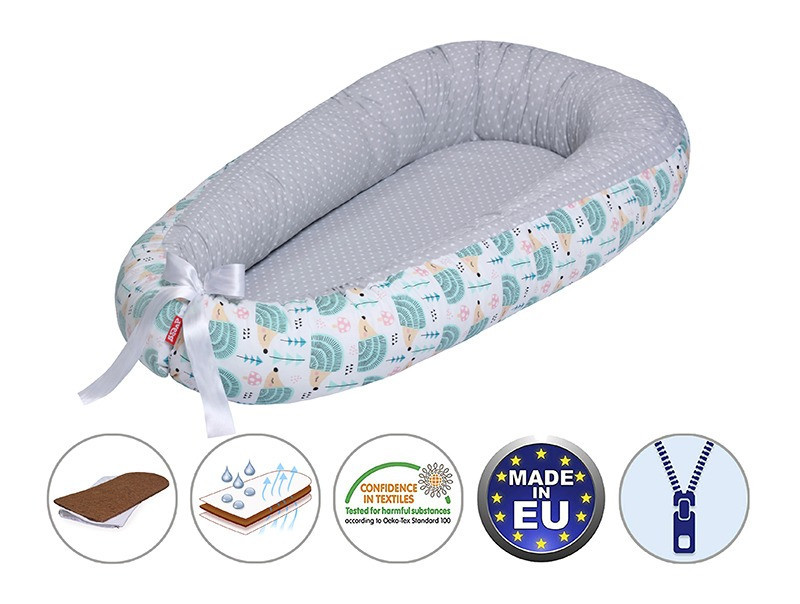- Kiságyban betétként. Az újszülött gyerekeknek nagy és tágas a kiságy, ezért sokkal biztonságosabban érzik magukat a babafészekben, mivel körbeöleli őket.