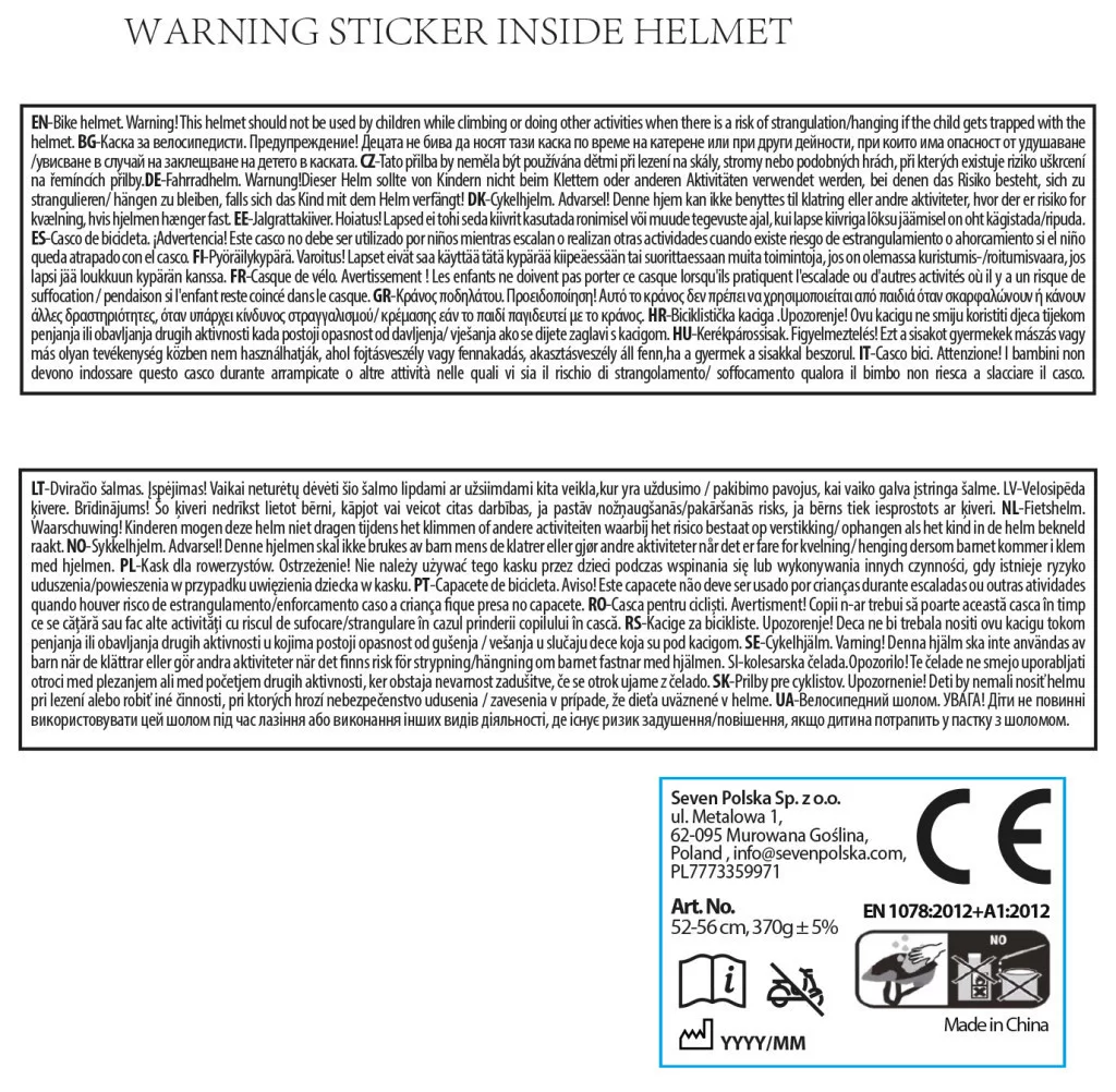 Figyelem! Ezt a sisakot gyermekek nem használhatják mászás vagy más olyan tevékenységek közben, amelyek során fennáll a fulladás/felakadás veszélye, ha a gyermek beszorul a sisakba.