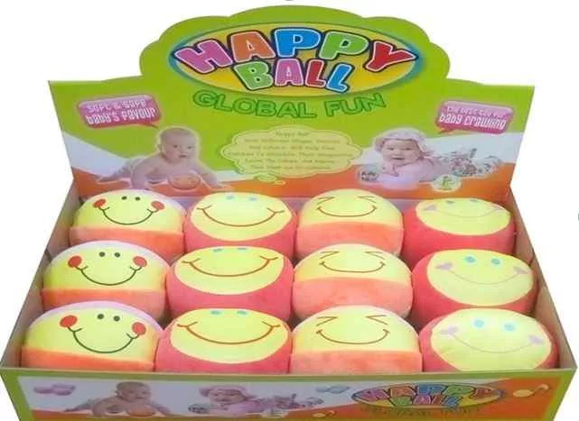 Soft labda, csörgõs, arcos, textil, velúr, plüss,14 cm, 12/displ.