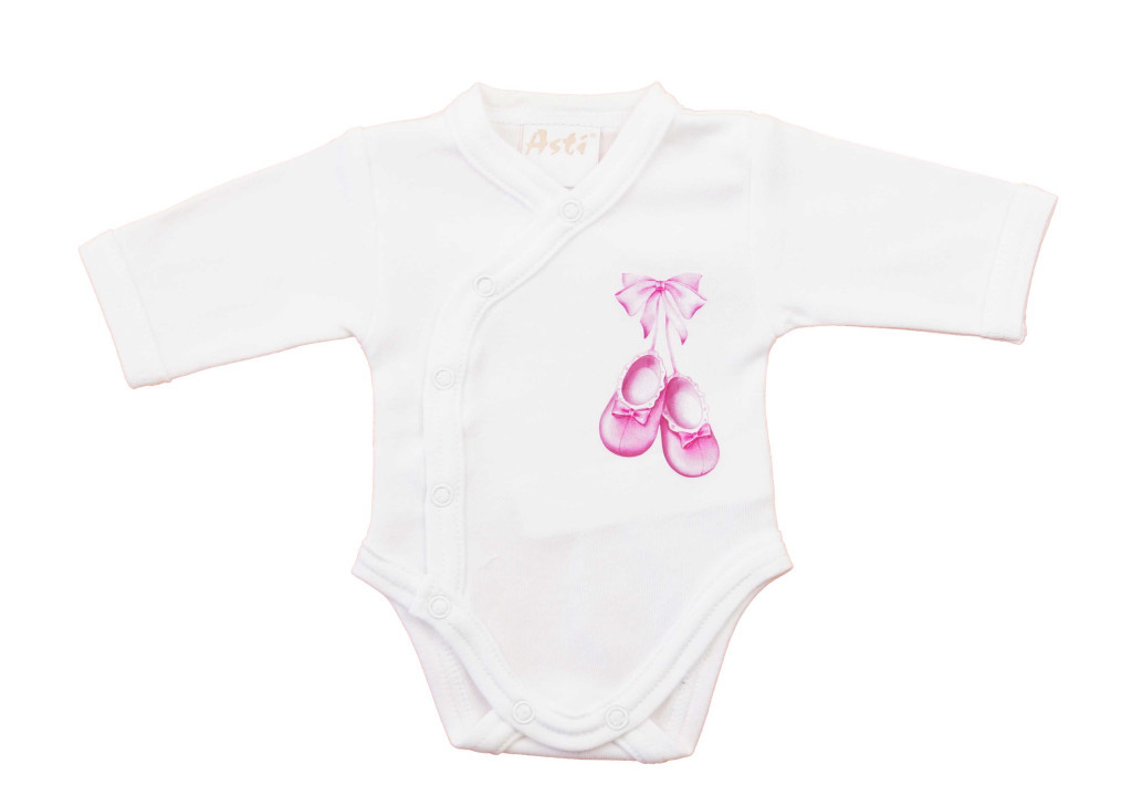 Elöl patentos hosszú ujjú baba body – Kis cipő mintával
