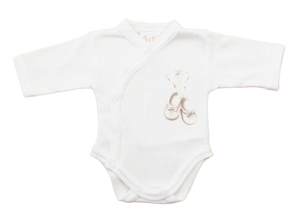 Öltöztesd kisbabádat stílusosan és kényelmesen ezzel a bájos, kis cipő mintával díszített hosszú ujjú bodyval! Az elöl található patentoknak köszönhetően a body gyorsan és egyszerűen feladható, így megkönnyíti a mindennapi öltöztetést.