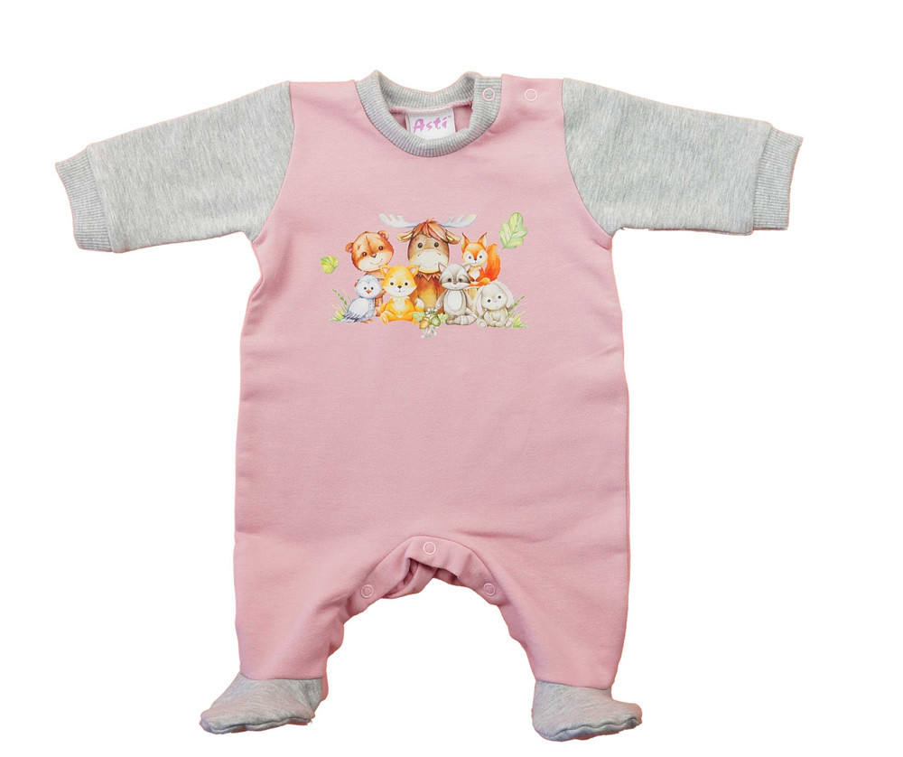 Belül bolyhos, hosszú ujjú baba rugdalózó – Állatos mintával