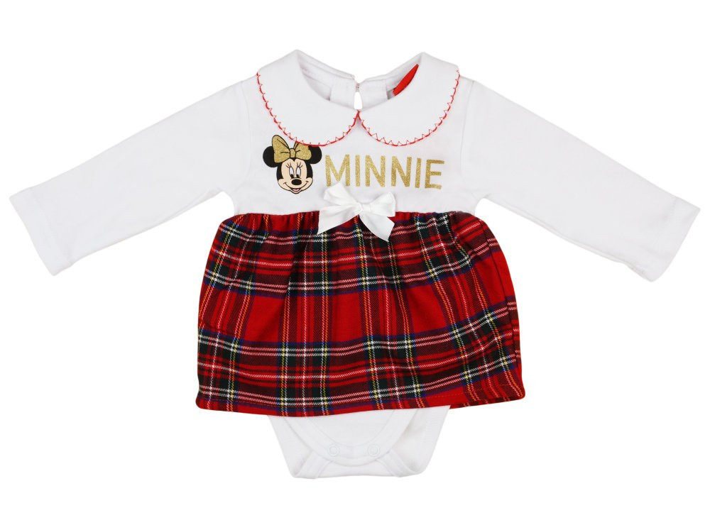 Disney Minnie galléros| hosszú ujjú karácsonyi body| kombidressz kockás betéttel fehér
