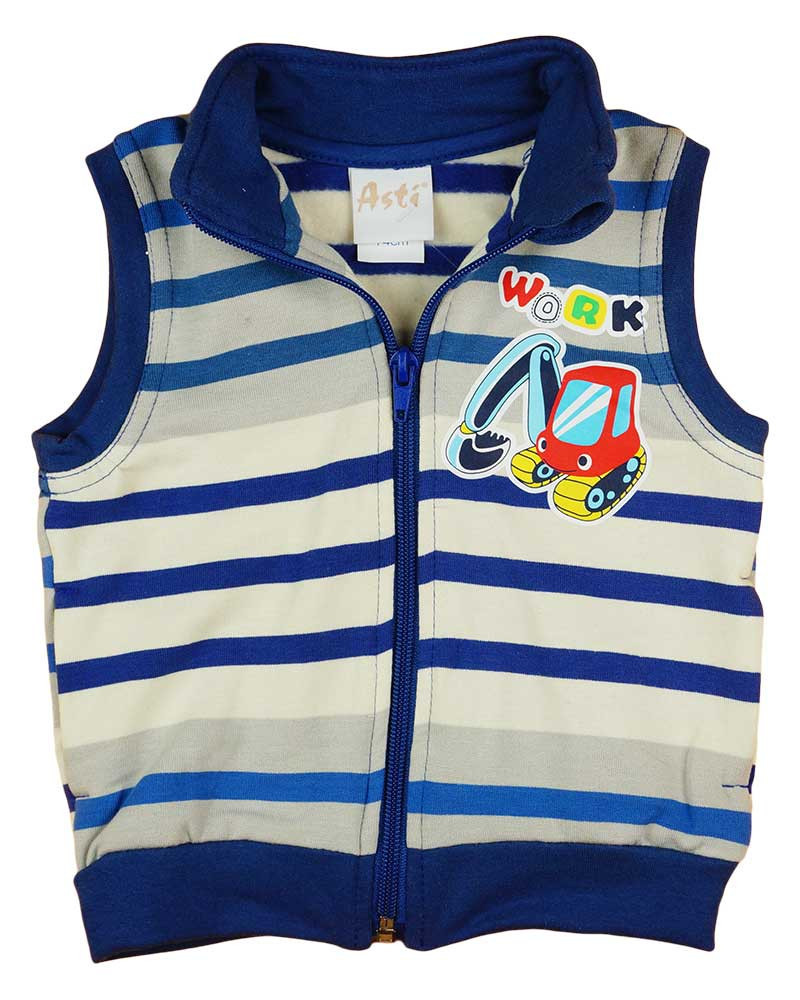 Vigye haza gyermekének ezt a bolyhos belsővel készült, munkagépes mintázatú kisfiú mellényt, ami tökéletes választás a hidegebb napokra. A kék színű, elöl cipzáras kialakítású mellény oldalt zsebekkel van ellátva, így a kicsik könnyen elrejthetik benne kincseiket. A munkagépes minta pedig garantáltan le fogja kötni a fiúk fantáziáját. A mellény Magyarországon készült, minőségi 65% pamut és 35% poliészter anyagból. Az A-K által gyártott, I. osztályú termék hosszú élettartamot ígér.