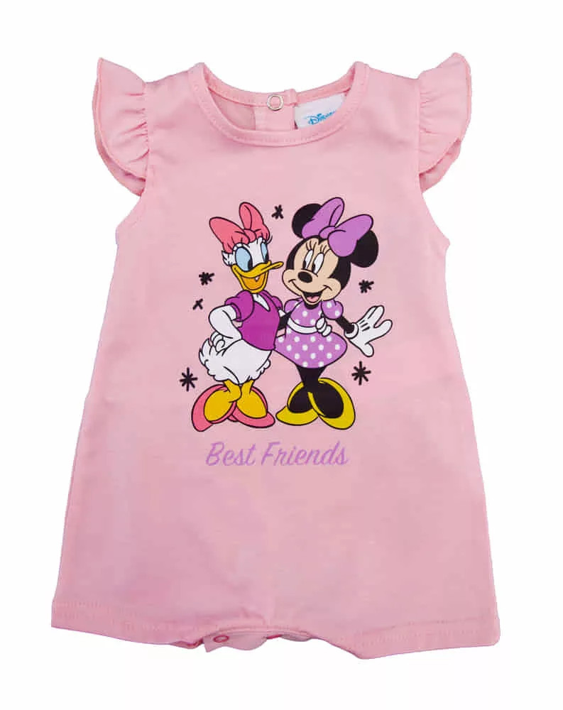Készüljön fel a legforróbb nyári napokra ezzel a gyönyörű, Minnie egér mintás ujjatlan baba napozóval. A rózsaszínű, 100% pamut anyagból készült ruha kényelmes viseletet biztosít kisbabának egész napra, míg a patentok megkönnyítik az öltözködést és a gyors peluscserét. A napozó elején található Minnie egér minta garantáltan mosolyt csal minden kislány arcára. Tökéletes választás a forró nyári napokon való viselésre. A termék minőségi, jól mosható, szín- és formatartó anyagból készült, és a nikkelmentes patentoknak köszönhetően nem okoz allergiás reakciót az erre érzékeny babáknál. Eredeti Disney termék, melyet Magyarországon gyártottak.