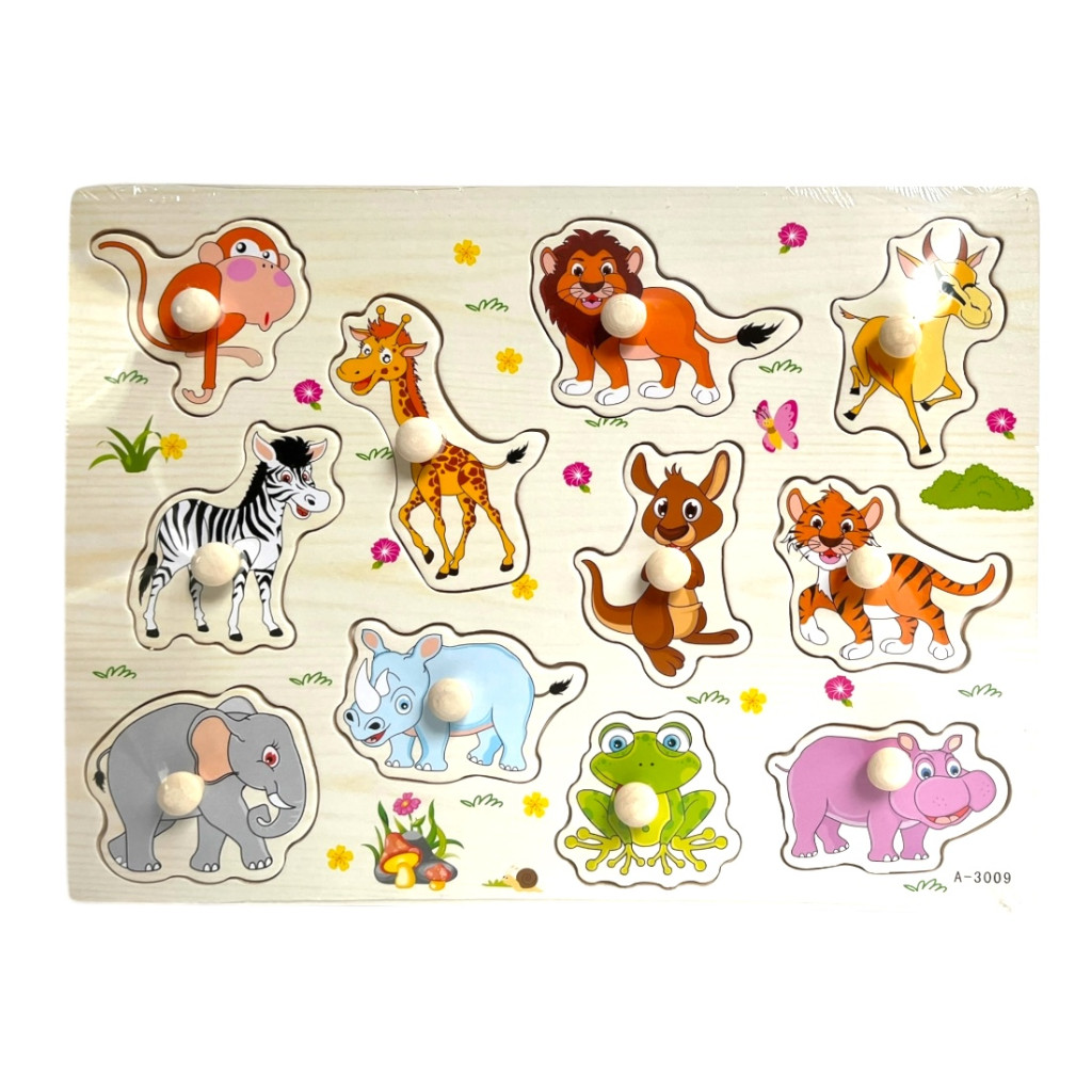 Fa ki-berakó, fafogantyús, vadállatos, 30x23 cm pvc csom.
