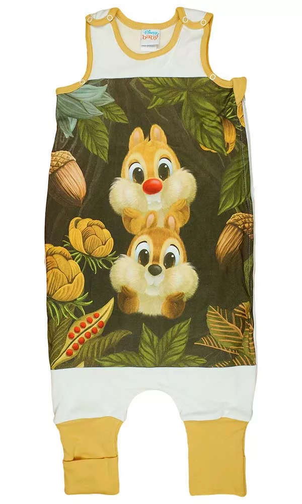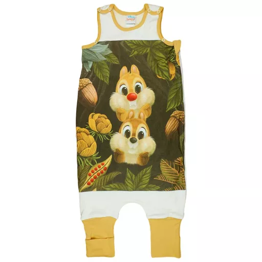 Csodálatosan puha, 100% pamutból készült ujjatlan tipegő hálózsák, mely minden apró kincsét melegen és kényelmesen tartja az éjszaka folyamán. Az eredeti Disney terméket Chip és Dale mintával díszítették, amely varázslatos és játékos hangulatot kölcsönöz a terméknek. A vállon lévő patentos és oldalt cipzáras kialakítás lehetővé teszi a könnyű öltöztetést és pelenkázást. A lábszár részen a lábfejre hajtható design pedig extra melegséget biztosít a hideg éjszakákon. Két méretben kapható, így a növekvő babájának mindig tökéletesen illő hálózsákja lesz.